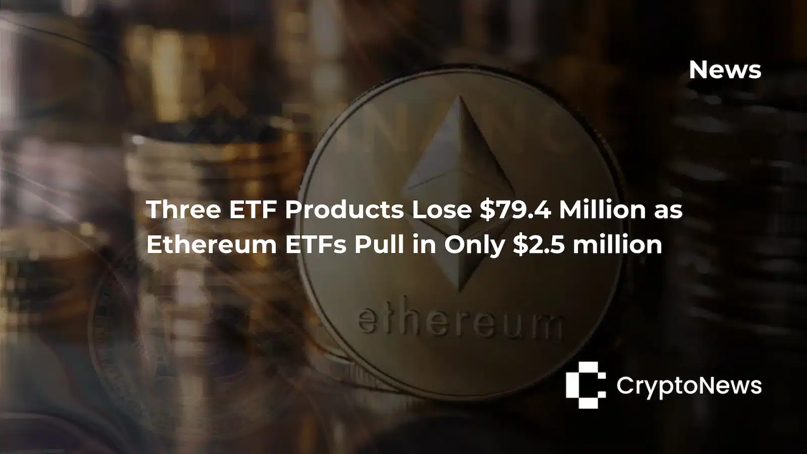 Three out of the nine existing Ethereum ETF products recorded an outflow of $79.4 million yesterday draining the Ethereum ETFs.
